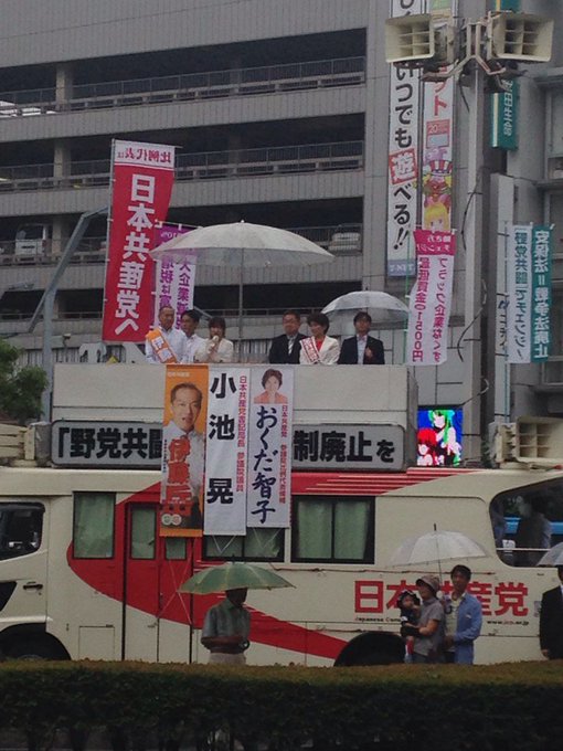 小池晃in南越谷NOW! 伊藤岳さんは生活の党の推薦も貰った。昨日のBSフジでは埼玉選出の新藤議員が9条二項外すのかと聞いたらそうだと言った。 北東アジア平和協力構想が戦争法の対案 pic.twitter.com/bwhwmHQ6Ph