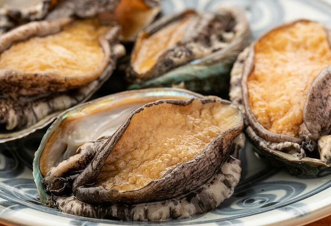 【今日の季語3802<880】鮑・鰒(あわび):三夏の生類季語。素潜り漁法を指す「鮑取」の傍題も。巻貝の一種にあたるが二枚貝の片側のように見えるので古くから片想いの比喩に用いられてきた。◆宵越しの金もて鮑仕入れけり(鈴木真砂女)