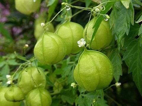 【今日の季語3910<988】風船蔓(ふうせんかずら):仲秋の植物季語。夏から秋にかけて細い蔓の先に白い小花を付け、緑色で中空の実を結ぶ。その形状が風船に似ているところからこの名が出た。◆雨粒の弾む風船蔓かな(甲士三郎)