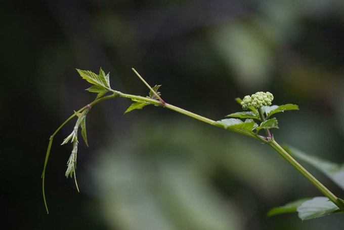 【今日の季語3890<968】藪枯(やぶから)し:初秋の植物季語。ブドウ科の蔓草で他の植物に絡みついて繁茂する性質があり、藪までも枯らしてしまうという意味でこう呼ばれる。「貧乏葛」の別名も。◆藪からし振り捨て難く村に住む(百合山羽公)