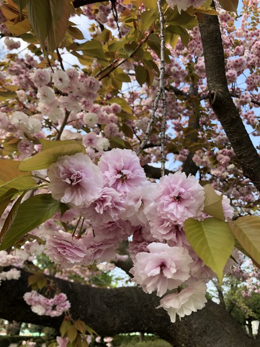 お団子を下げたるような八重桜 青空遠く従えており 公彦